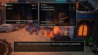 —Some of the world’s towns have their own monster arenas, where you can take on different tournaments. Each tournament has its own rank, and you can take part in one as long as you pay your entry fee and have enough monsters to form a team.