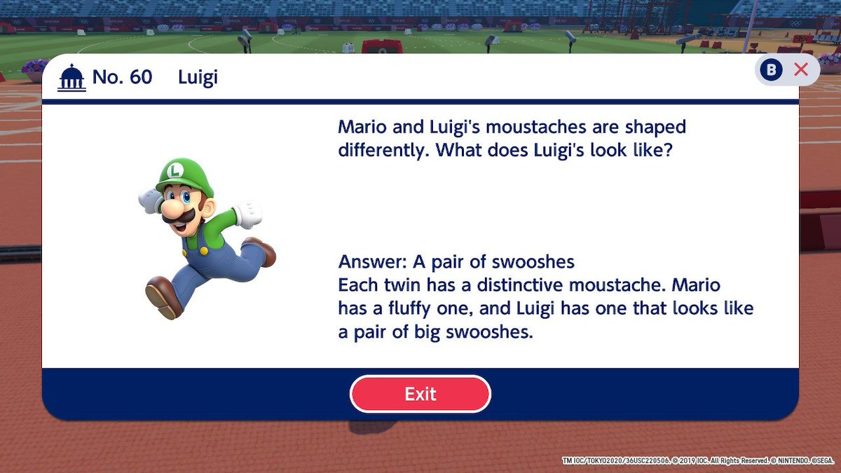 - Fun trivia on the Olympics and Mario & Sonic series available in hub areas.