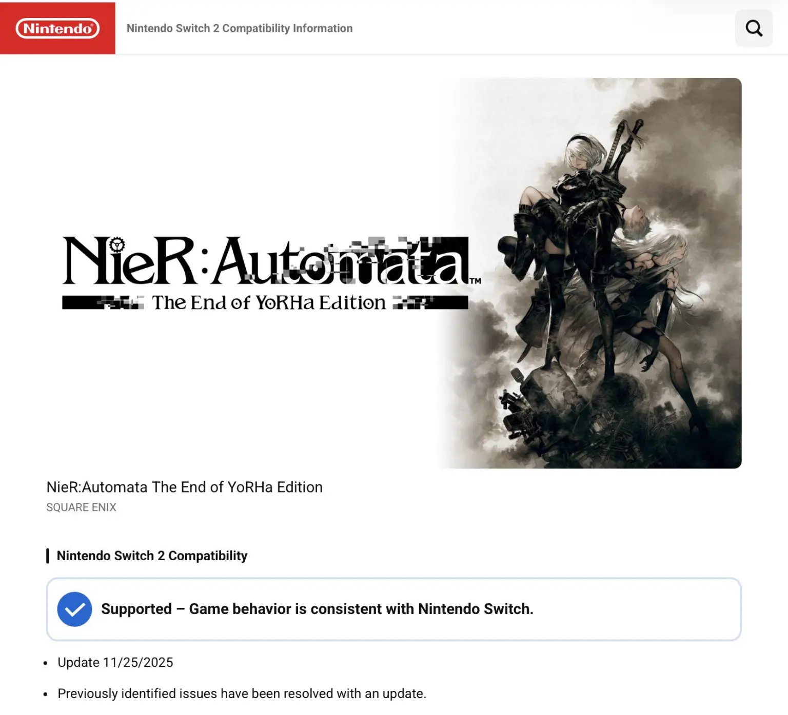 Nintendo has fixed the compatibility issues that Nier Automata had on Switch 2.
