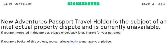 Of course, Nintendo eventually took notice of this and issued a DMCA take-down to halt the project. According to the take-down notice, Nintendo’s law partners alleged that the campaign creator had infringed on the company’s Animal Crossing copyright with the passport holder design. Subsequently, Kickstarter took down the campaign and posted a notice about the dispute: