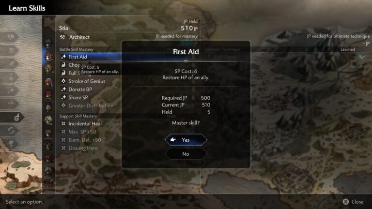 As the story progresses, the protagonist can choose one of eight jobs to pursue—“Warrior,” “Merchant,” “Thief,” “Apothecary,” “Hunter,” “Cleric,” “Scholar,” “Dancer.”