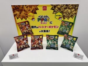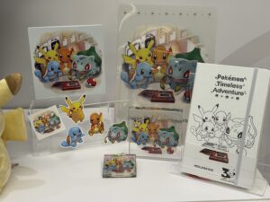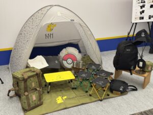 The lineup was shown off at a special Pokemon 30th Anniversary Begins kick-off event held in Japan. It includes camping equipment, various snacks, plush toys, appareal, and more. The centerpiece is a set of merch based on the packaging for all the mainline Pokemon games released so far, which includes keychains and a paper diorama of the S.S. Anne.