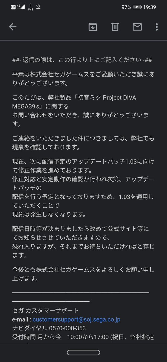 Here’s what SEGA customer support said (translated by NintendoSoup, NintendoSoup must be credited in order to reuse the translation).