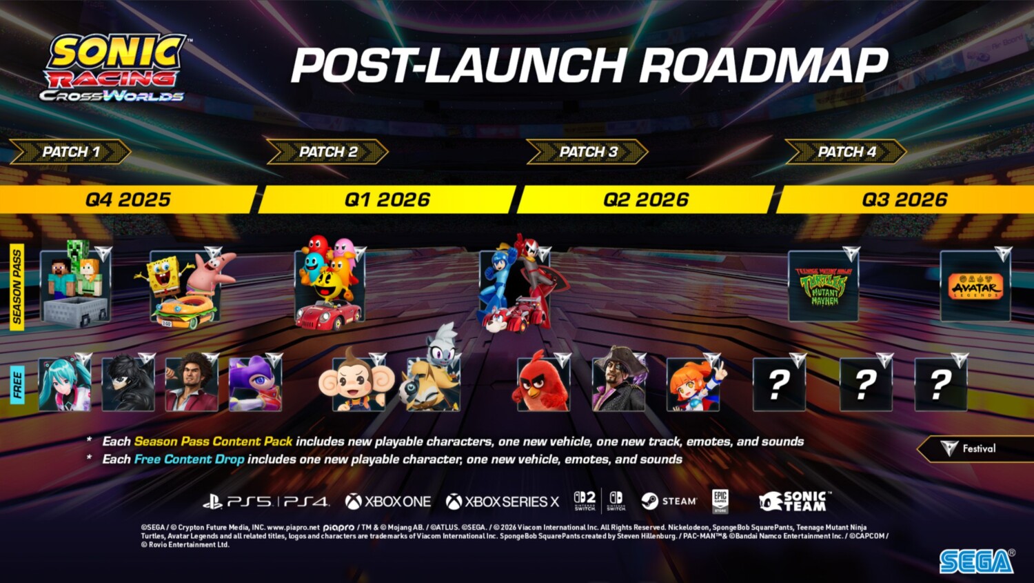 SEGA has shared an updated roadmap for Sonic Racing: CrossWorlds.