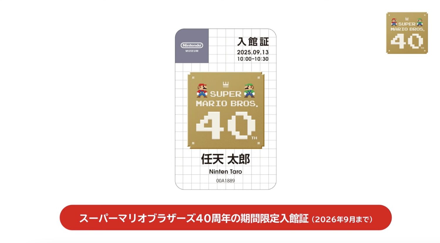 These include a special Super Mario Bros. 40th Anniversary entry card for Nintendo Museum, exhibition of documents and art from past Mario games at Nintendo Museum, and more.