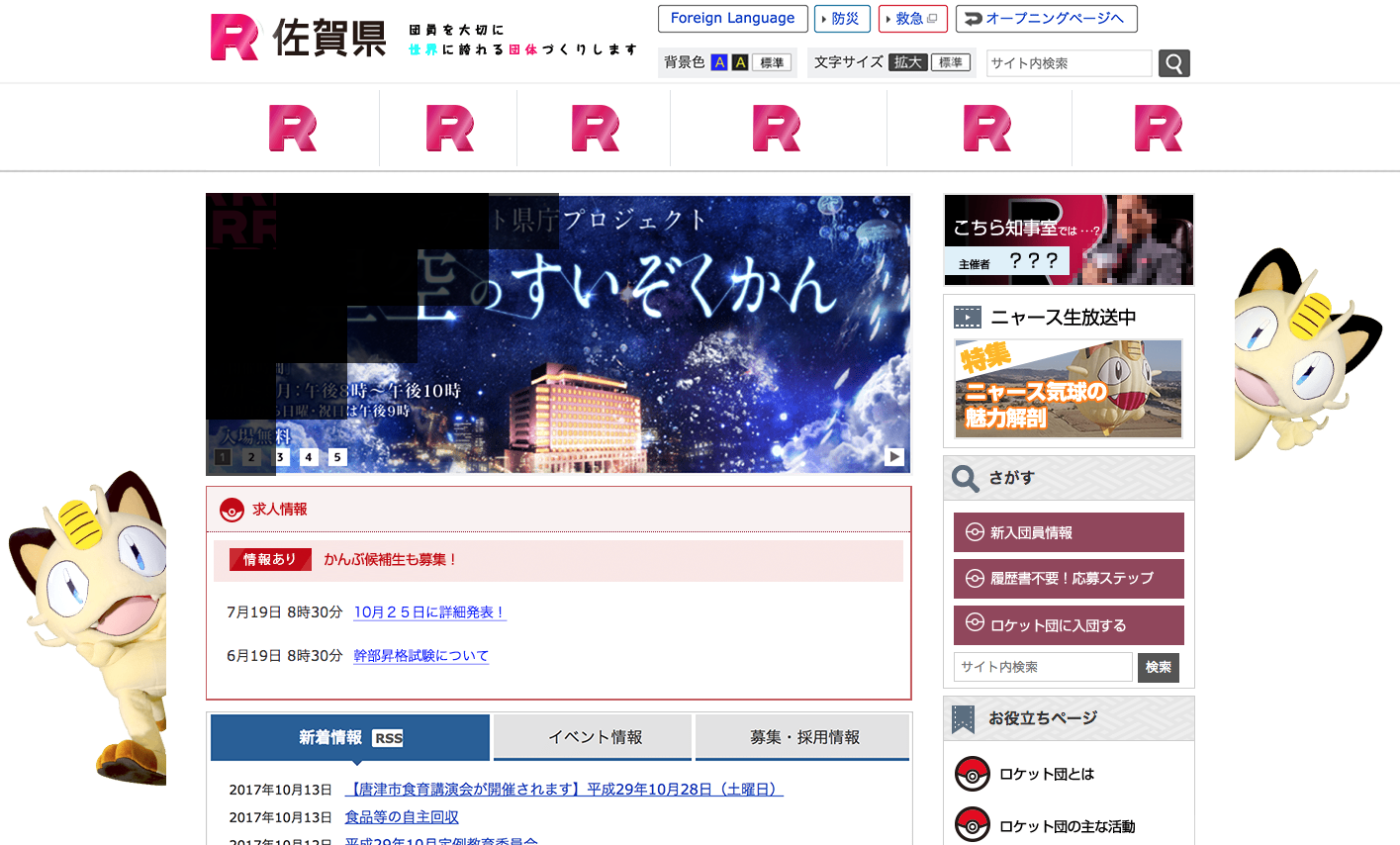 In the mean time, you can visit the official Saga prefecture website, which has apparently been taken over by Team Rocket.