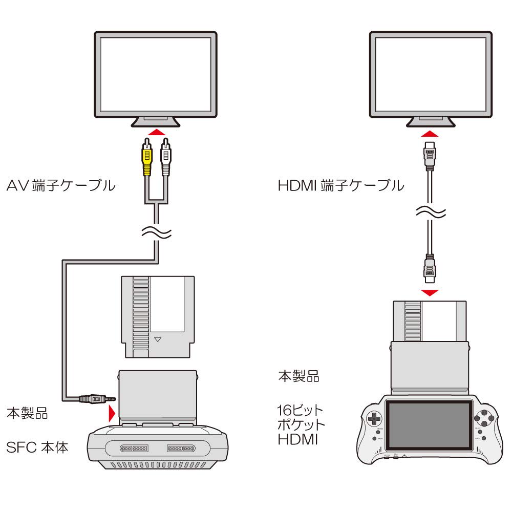 To beam out gameplay on the screen, you’ll need to connect an AV cable (for the Super Famicom) from the adapter to the TV, or a HDMI cable (for the Columbus Circle handheld console) from the adapter to TV.